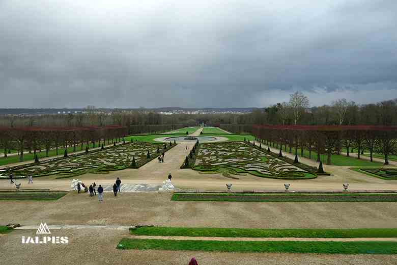 Au sortir du château, côté jardin, une terrasse ornée de Bacchus et de Flore, aux pieds desquels s’étend un vaste parterre à la française, "Les Broderies", s’ouvrant sur le large bassin agrémenté de la fontaine de Scylla, que Circé transforma en monstre marin.